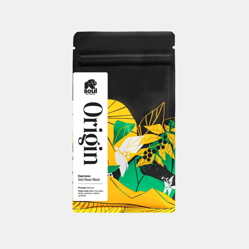 Roasted using a blend of traditional and modern techniques, this coffee delivers a bold, balanced flavor with notes of cacao, subtle fruit sweetness, and hints of herbs. Perfectly suited for espresso brewing, it extracts beautifully in modern coffee machines — offering a smooth body, rich crema, and refined taste that reflects the essence of Vietnamese coffee culture. Sourced from sustainable farms in Đắk Lắk and Lâm Đồng, this specialty coffee is crafted through a transparent farm-to-cup process, free from additives, offering an authentic taste of Vietnam.